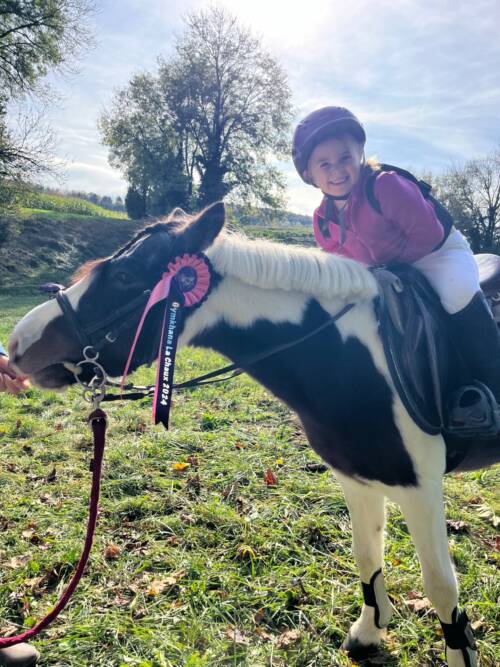 Séances encadrées de 60 min. pour la première approche du poney à partir de 4 ans. Au rythme de l’enfant, il s’agit de prendre contact, toucher, brosser, et découvrir son équilibre à poney à travers de petits jeux et de promenade.
